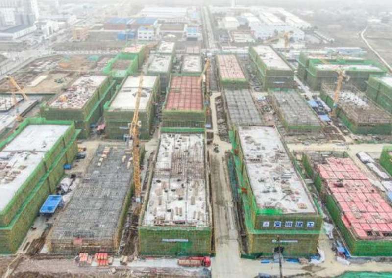 走進(jìn)建設(shè)現(xiàn)場(chǎng),只見(jiàn)塔吊林立、機(jī)聲轟鳴,一棟棟廠房已拔地而起。